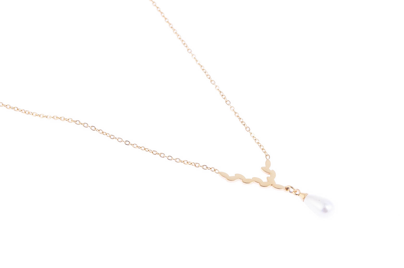 Elegancki, złoty łańcuszek z uroczą przywieszką, ozdobioną perełką.Wymiary naszyjnika: