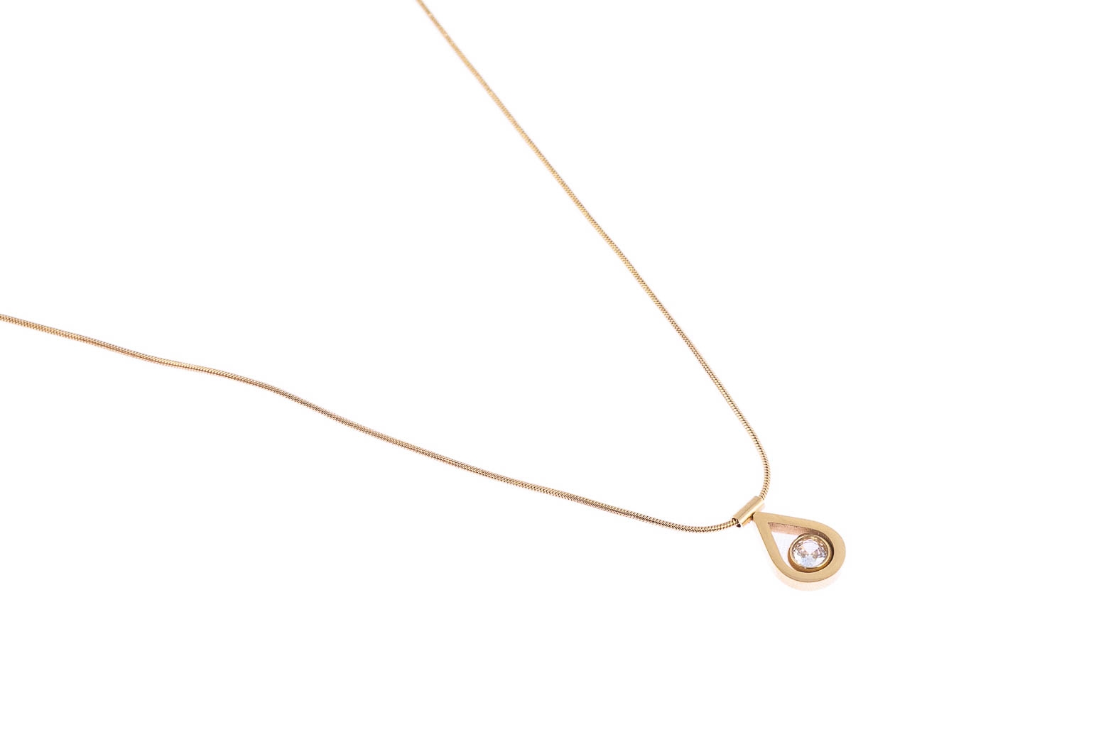 Elegancki, złoty łańcuszek z uroczą przywieszką, ozdobioną pięknie mieniącym się dżetem.Wymiary naszyjnika:
