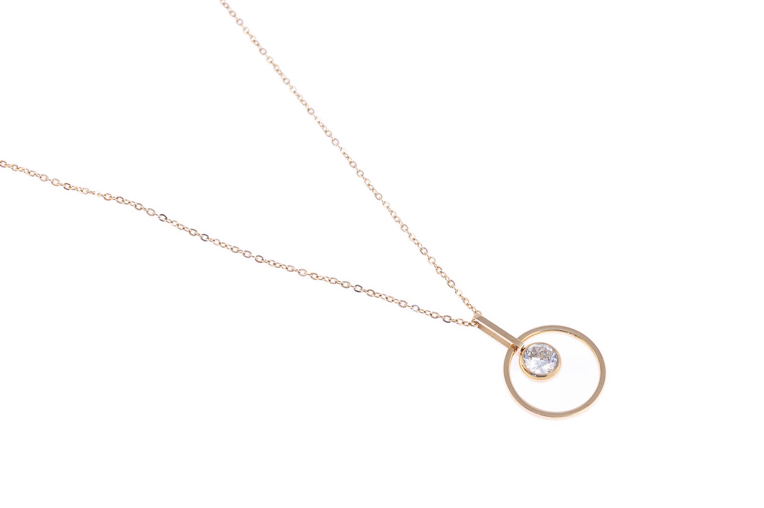 Elegancki, złoty łańcuszek z uroczą przywieszką, ozdobioną pięknie mieniącym się dżetem.Wymiary naszyjnika: