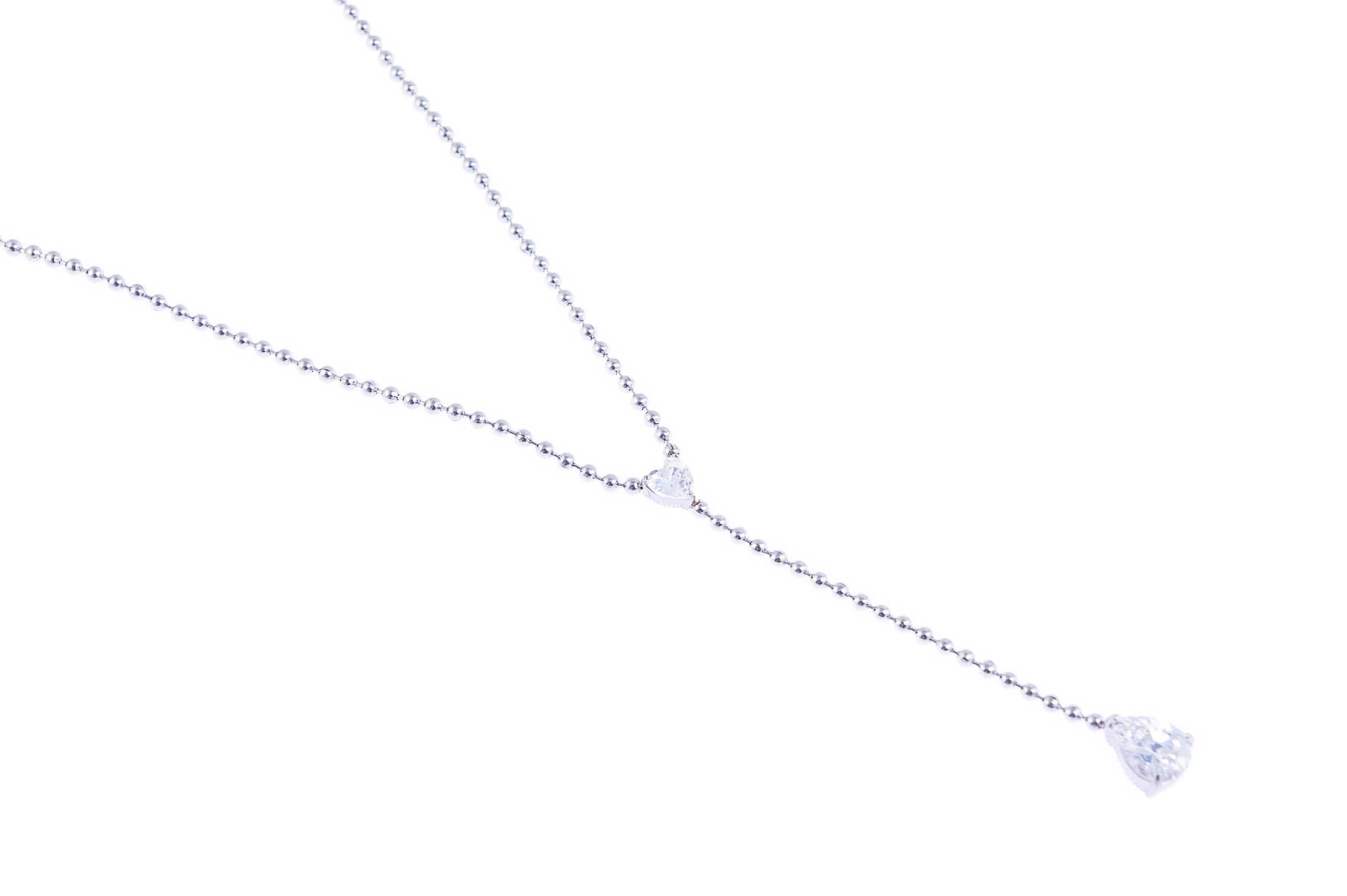 Elegancki, srebrny łańcuszek z uroczą przywieszką w kształcie serduszka i łezki.