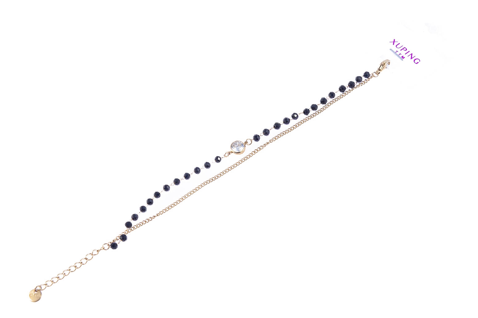 Elegancka złota bransoletka z uroczą przywieszką, bransoletka ozdobiona jest czarnymi, szlifowanymi koralikami.Wymiary bransoletki: