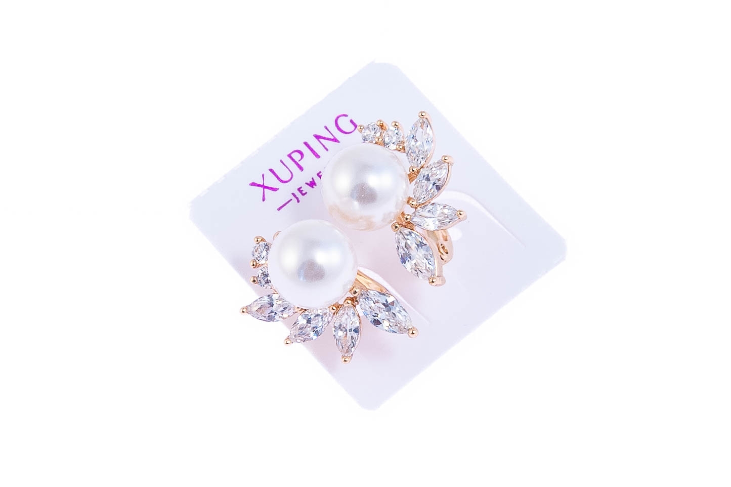 Eleganckie wiszące, złote kolczyki ozdobione perłami i pięknie mieniącymi się kamieniami.Wymiary kolczyków: