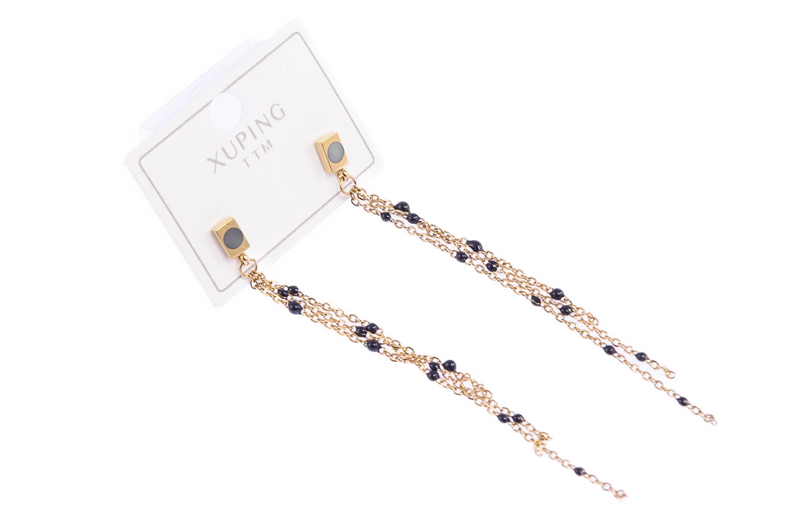Eleganckie, wiszące kolczyki, ozdobine czarnymi elementami. Kolczyki w kolorze złotym.Wymiary kolczyków: