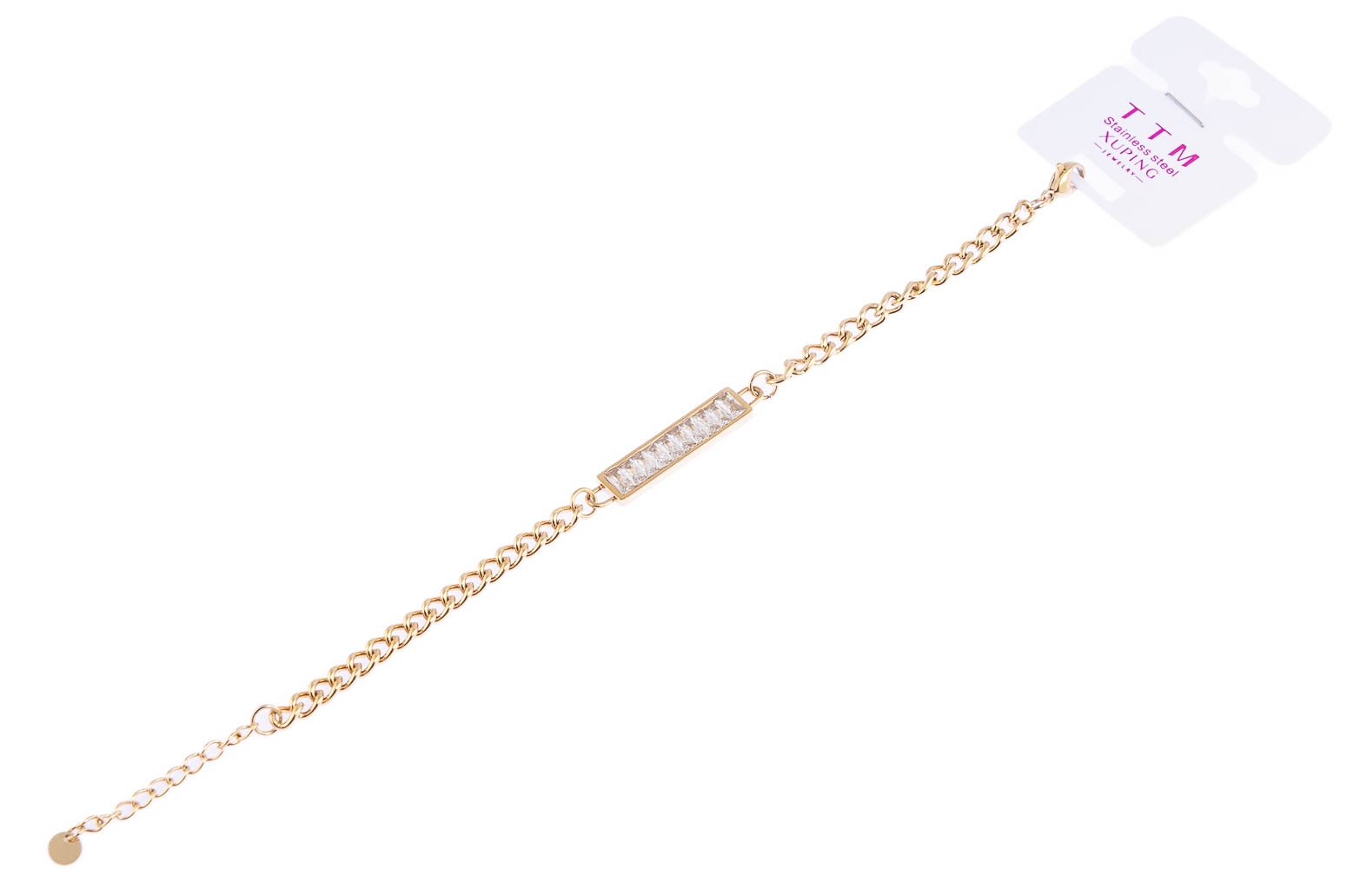 Elegancka bransoletka ozdobiona szlifowanymi kamieniami pięknie mieniącymi się. Bransoletka jest w kolorze złotym.