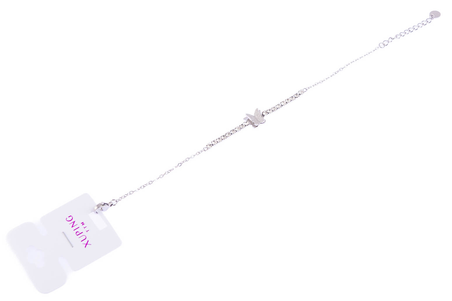 Elegancka bransoletka z uroczą ozdobą w kształcie motylka. Bransoletka jest w kolorze srebrnym.Wymiary bransoletki: