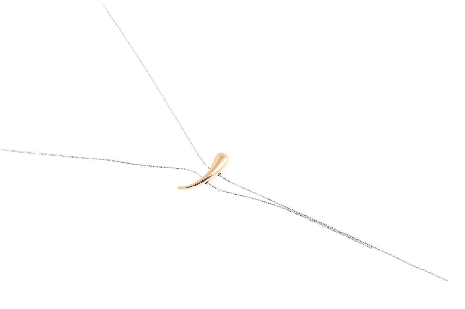 Elegancki łańcuszek z przywieszką w kolorze złotym. Naszyjnik jest w kolorze srebrnym.