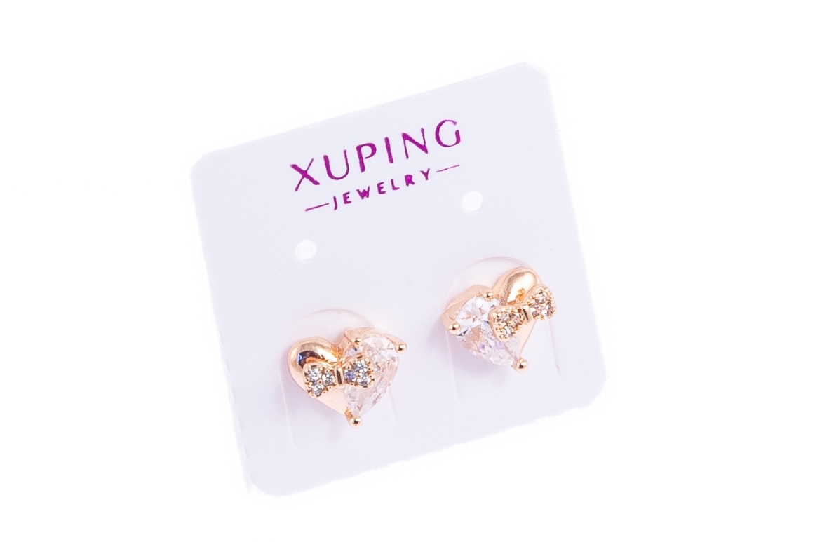 Eleganckie kolczyki serduszka w złotym kolorze, ozdobione pięknie mieniącymi się kamieniami.Wymiary kolczyków: