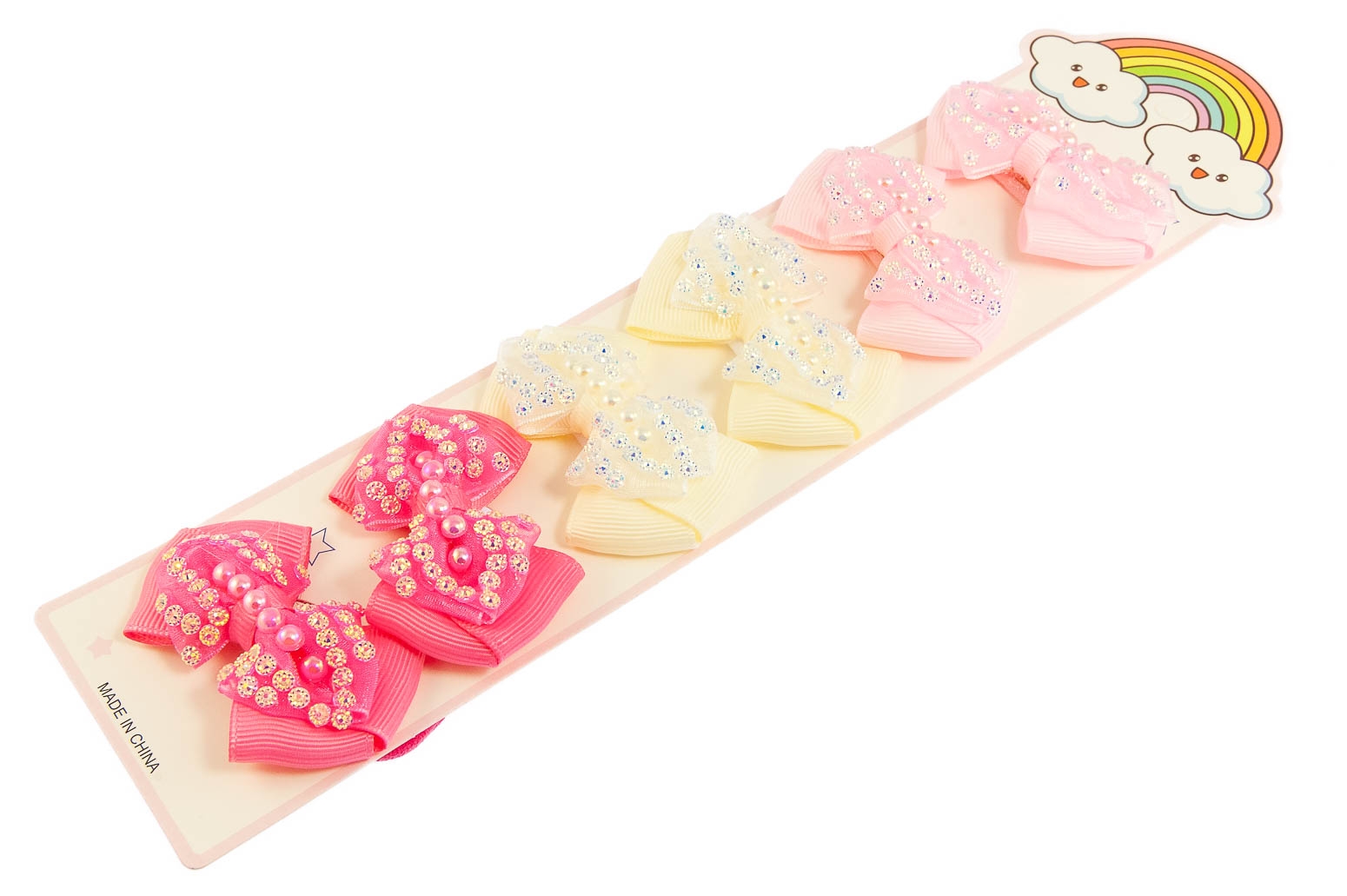 Klasyczne gumki do włosów z uroczą ozdobą w kształcie kokardki.Zestaw składa się z trzech kolorów: beżowy, jasny i ciemny różowy.