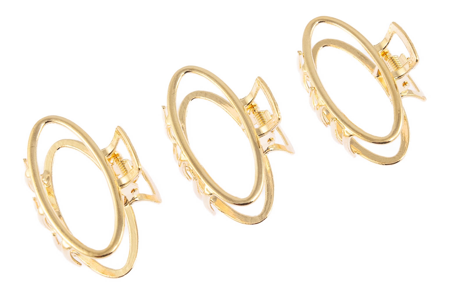 Oryginalna spinka do włosów wykonana z wytrzymałego materiału. Zestaw skada się ze spinek w kolorze złotym. Wymiary szczęki: Długość: 5 cm Szerokość: 3 cm