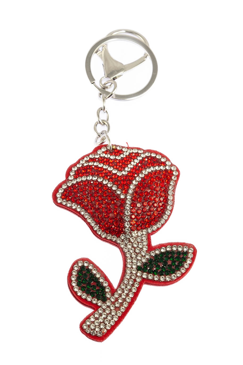 Elegancki brelok w kształcie róży, ozdobiony dżetami w kolorze białym, czerwonym i czarnym.Brelok idealnie nada się na prezent, który ucieszy każde dziecko.