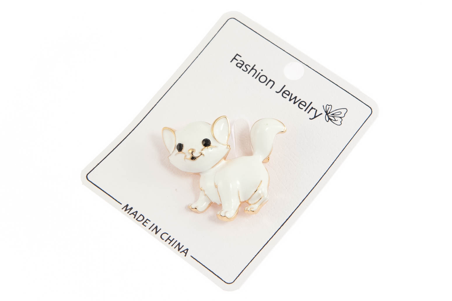 Elegancka broszka w kształcie kotka. Przywieszka w kolorze złotym, ozdobiona białą emalią.