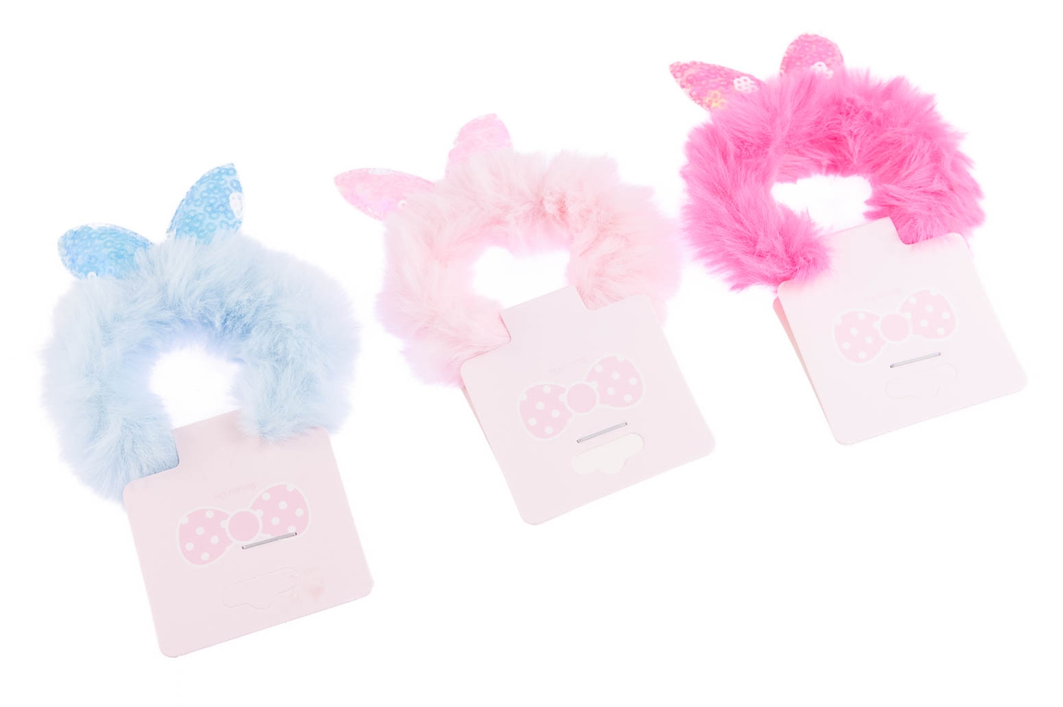 Futrzaste gumki do włosów z uroczą ozdobą w kształcie uszu królika.