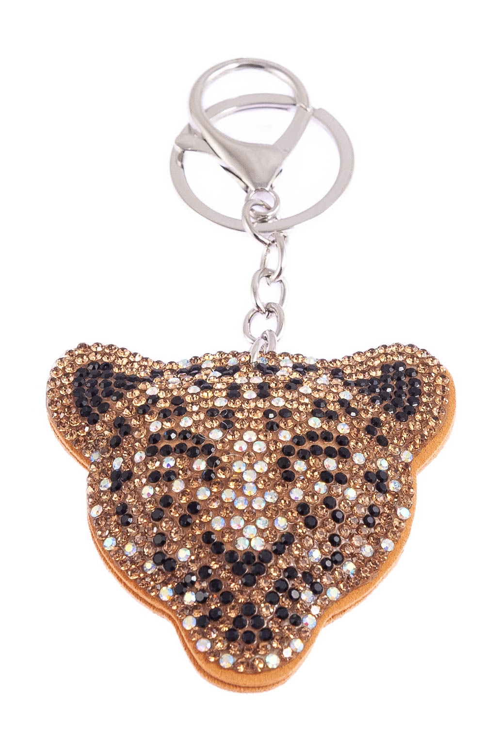 Elegancki brelok w kształcie tygrysa, ozdobiony dżetami w kolorze brązowym i czarnym.