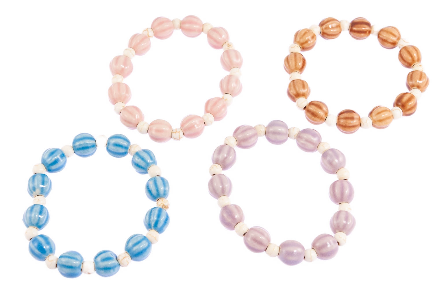 Elegancka bransoletka wykonana z oryginalnych koralików.Zestaw składa się z czterech kolorów: różowy, fioletowy, brązowy i niebieski.