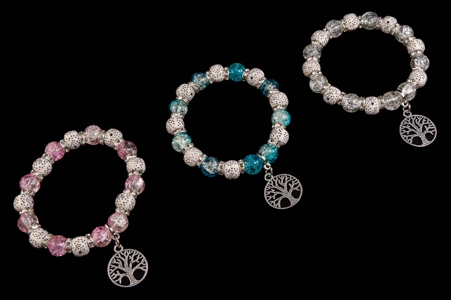 Bransoletka pięknie się mieni i posiada uroczą przywieszkę w kształcie drzewka.