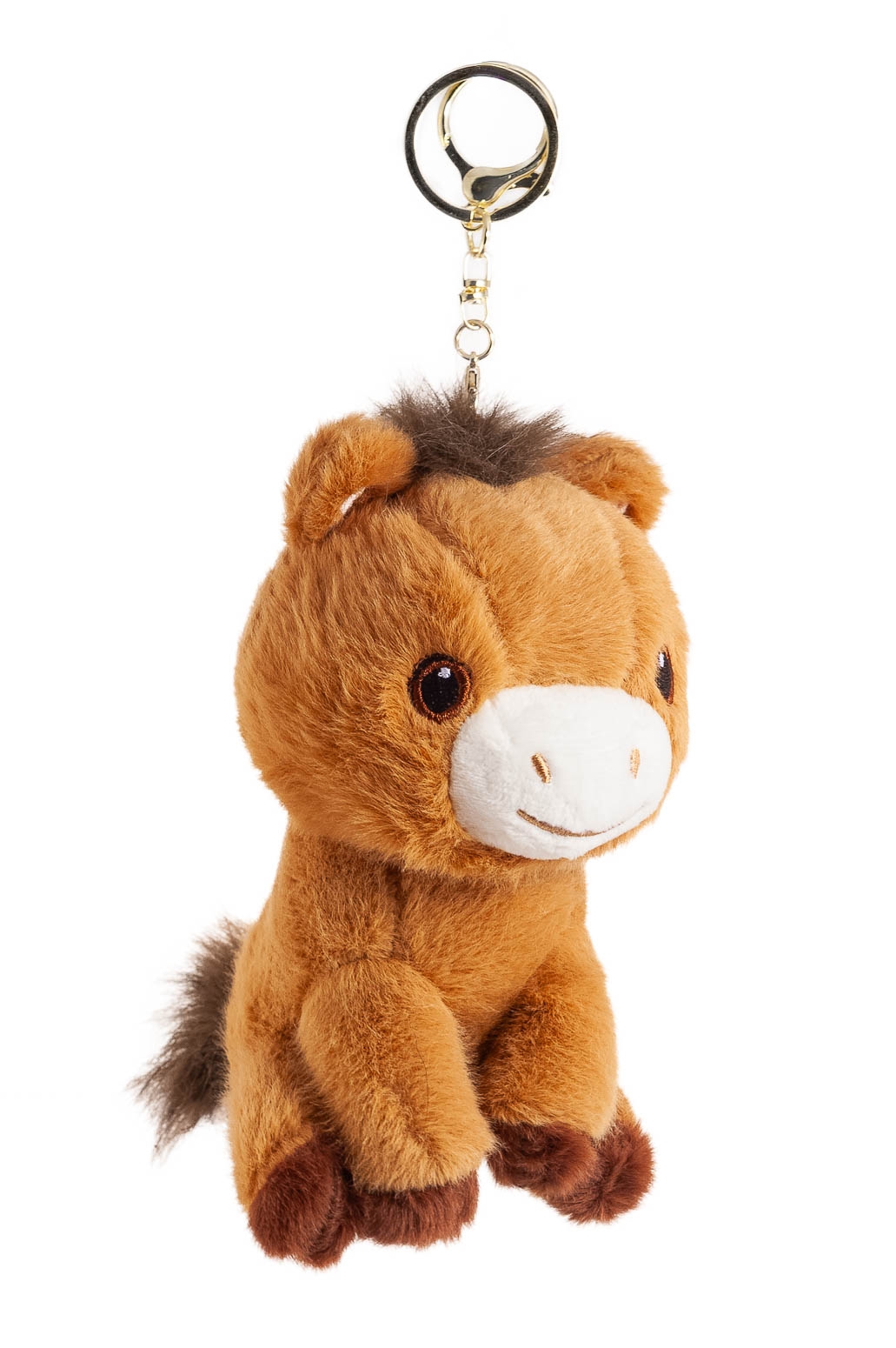 Uroczy brelok w kształcie konika w kolorze brązowym.