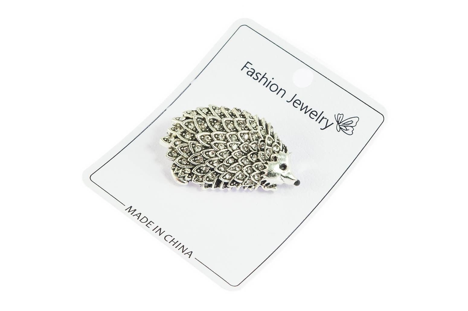 Elegancka broszka w kształcie jeża. Przywieszka w kolorze srebrnym, ozdobiona szlifowanymi kamieniami.