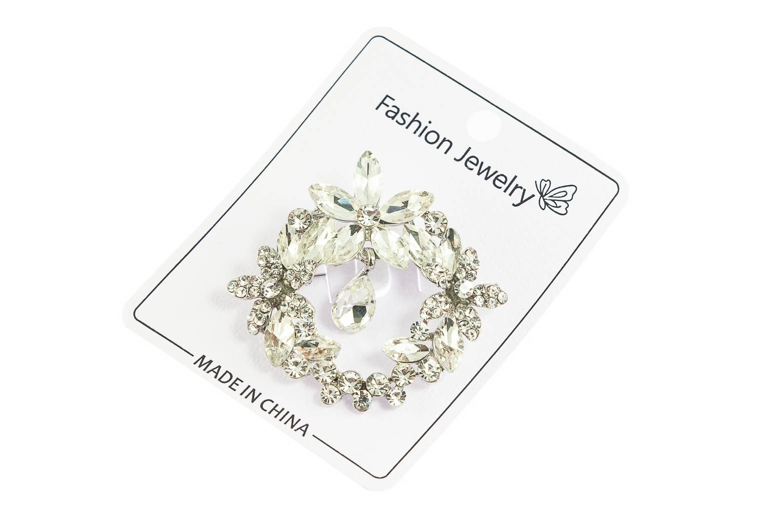 Elegancka broszka w kolorze złotym, ozdobiona szlifowanymi kamieniami.