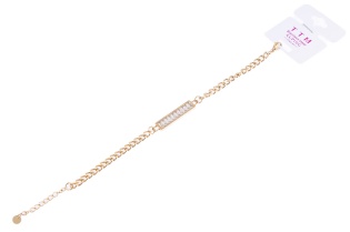 Elegancka, złota bransoletka z dżetowym koralikiem i przywieszką w kształcie krzyżyka.