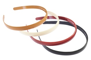 Opaska pokryta materiałem, ozdobiona uroczymi kokardkami.Zestaw składa się z trzech kolorów: biały, jasny i ciemny różowy.