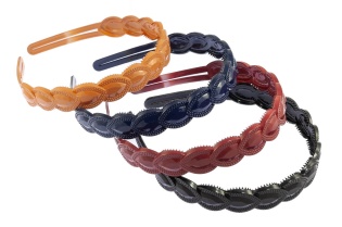 Opaska pokryta materiałem, ozdobiona uroczymi kokardkami.Zestaw składa się z trzech kolorów: biały, jasny i ciemny różowy.