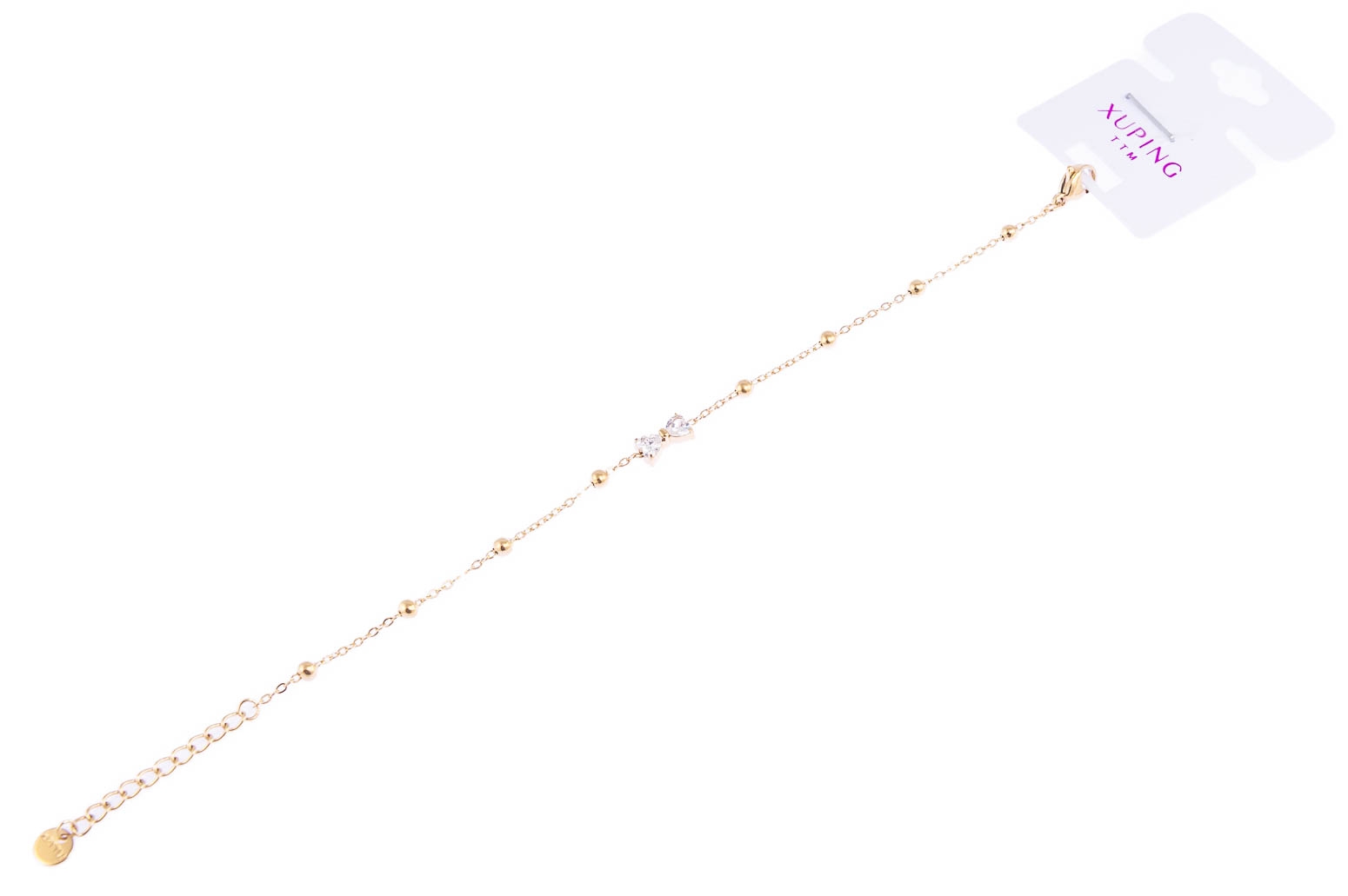 Elegancka bransoletka z uroczą ozdobą w kształcie kokardki. Bransoletka jest w kolorze złotym.