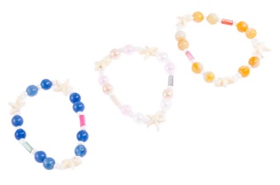 Elegancka bransoletka wykonana z koralików i rozgwiazd.