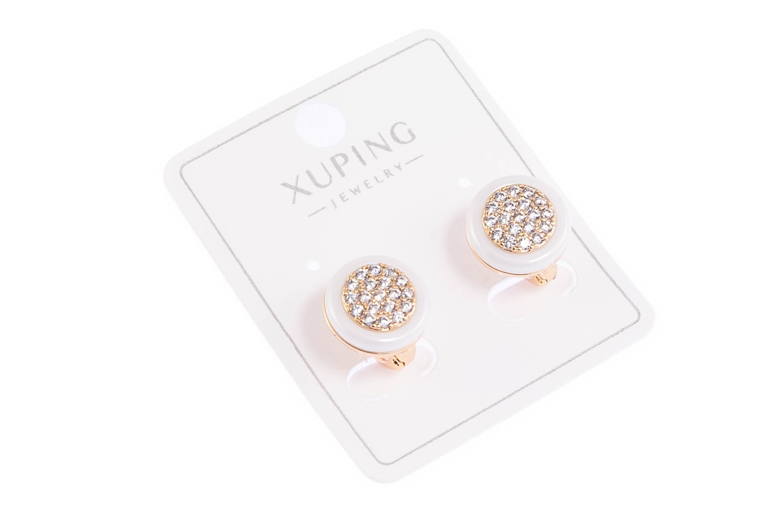 Eleganckie kolczyki, ozdobine mieniącymi się kamieniami i białymi elementami. Kolczyki w kolorze złotym.Wymiary kolczyków: