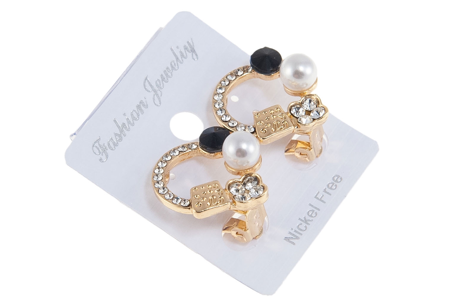 Eleganckie klipsy wykonane z trwałego metalu, ozdobione szlifowanymi kamieniami i perełkami. Dodadzą elegancji każdej kobiecie.Kolor: Złoty.