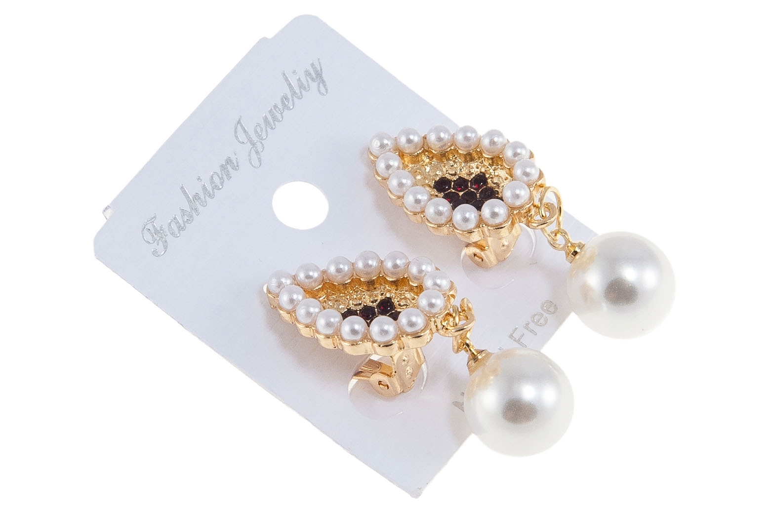 Eleganckie klipsy wykonane z trwałego metalu, ozdobione szlifowanymi kamieniami i perełkami. Dodadzą elegancji każdej kobiecie.Kolor: Złoty.
