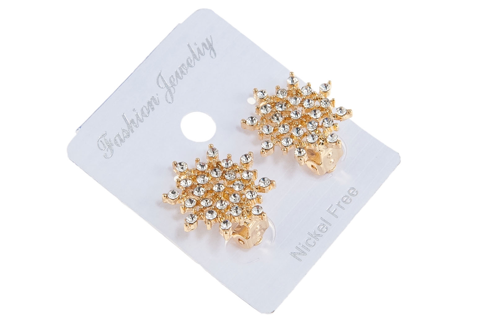 Eleganckie klipsy wykonane z trwałego metalu, ozdobione szlifowanymi kamieniami. Dodadzą elegancji każdej kobiecie.Kolor: Złoty.