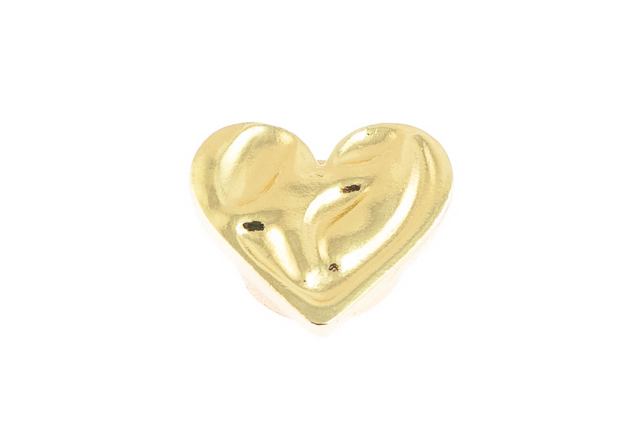 Elegancka ozdoba maskująca guzik mankietowy w kształcie serduszka. Przypinka w kolorze złotym.