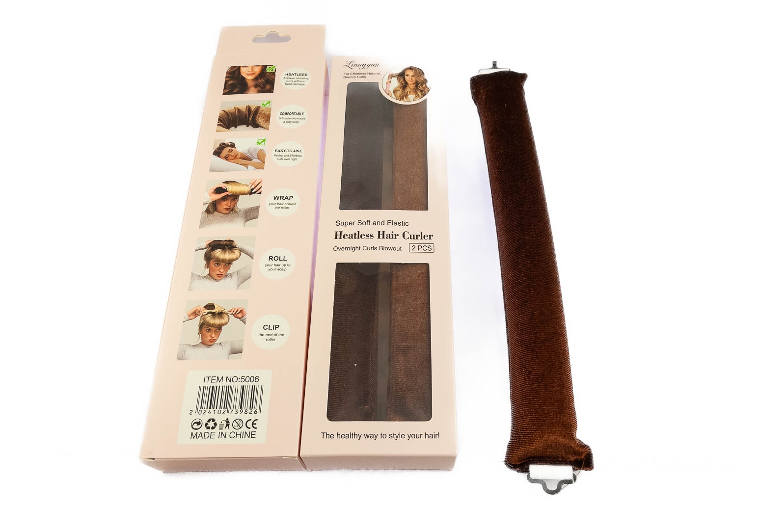 Akcesoria do zakręcenia włosów. Jest to walec z haczykami na szczytach. Przedmiot jest w kolorze brązowym. Wymiary : Długość: 30,0 cm Szerokość: 3,3 cm